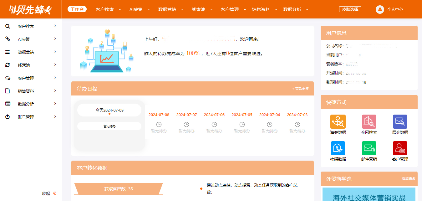 外贸先蜂适合各种类型的外贸企业使用,包括外贸企业老板、外贸SOHO、外贸经理、业务员等。无论是想要主动开发客户的外贸新手,还是希望提高客户管理效率的外贸企业经理,都可以从外贸先蜂中获得帮助。